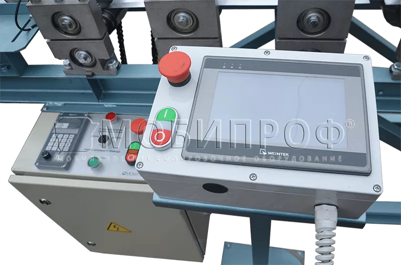 Для работы с рулонной сталью станок для шляпного профиля может быть оснащен фасонной гильотиной и автоматической системой управления с сенсорной панелью оператора, что в несколько раз увеличивает его производительность. Сенсорная панель оператора значительно облегчает процесс ввода и контроля параметров, а также позволяет вносить в память станка до 10 различных режимов работы.